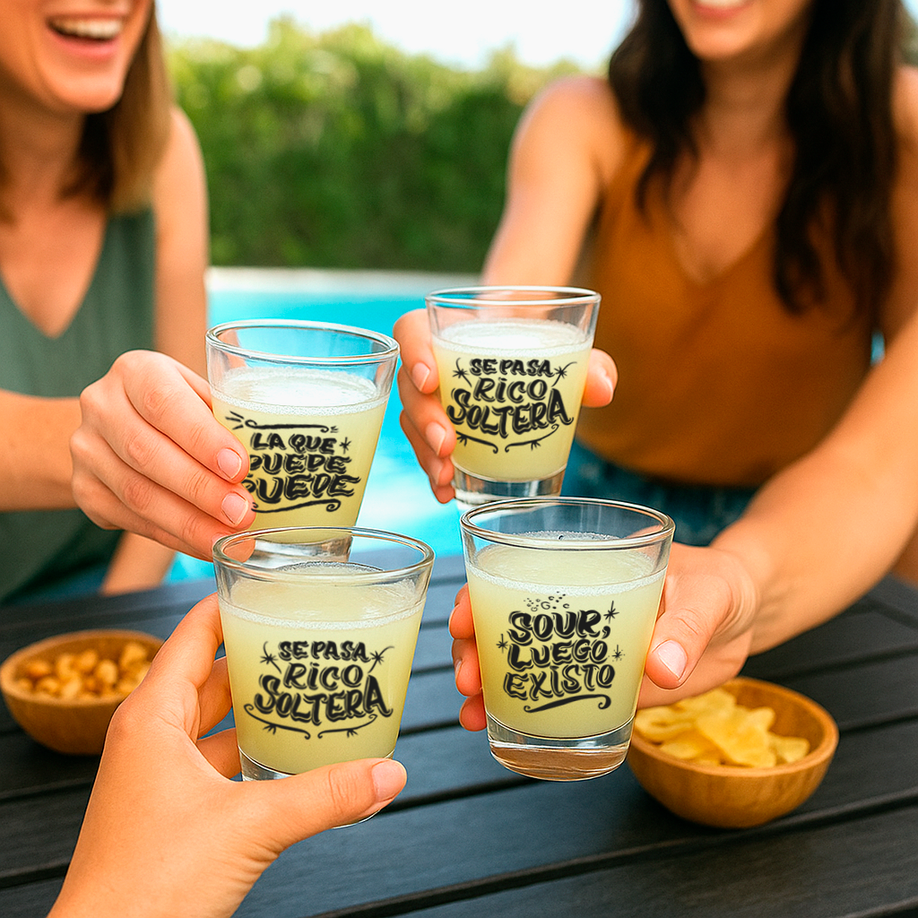 Esa colección llega para ser testigo oficial del chisme nacional. Porque todo buen cahuín comienza con un pisco sour y unas amigas. Estas frases no son cualquier cosita: llegan directo del grupo de amigas más discreto, donde su lema principal es: "Cahuinéamos, pero no juzgamos". Pack de 4 vasos de 210 cc. Perfectos pa’ el brindis, el cahuín y el grupo más discreto.