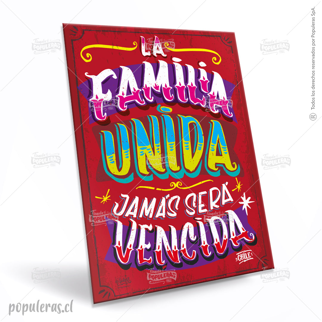 Cartel hecho a mano, luego digitalizado e impreso en adhesivo laminado mate. Emplacado en latón galvanizado con bordes reforzados. Especial para tu quincho y cualquier lugar de tu nueva casa. Para hacer un Regalo Chileno a tus parientes y amigos del extranjero para llevarlos a otro país cuando vayas de visita. También desarrollamos carteles personalizados pregunta a carteles@populeras.cl