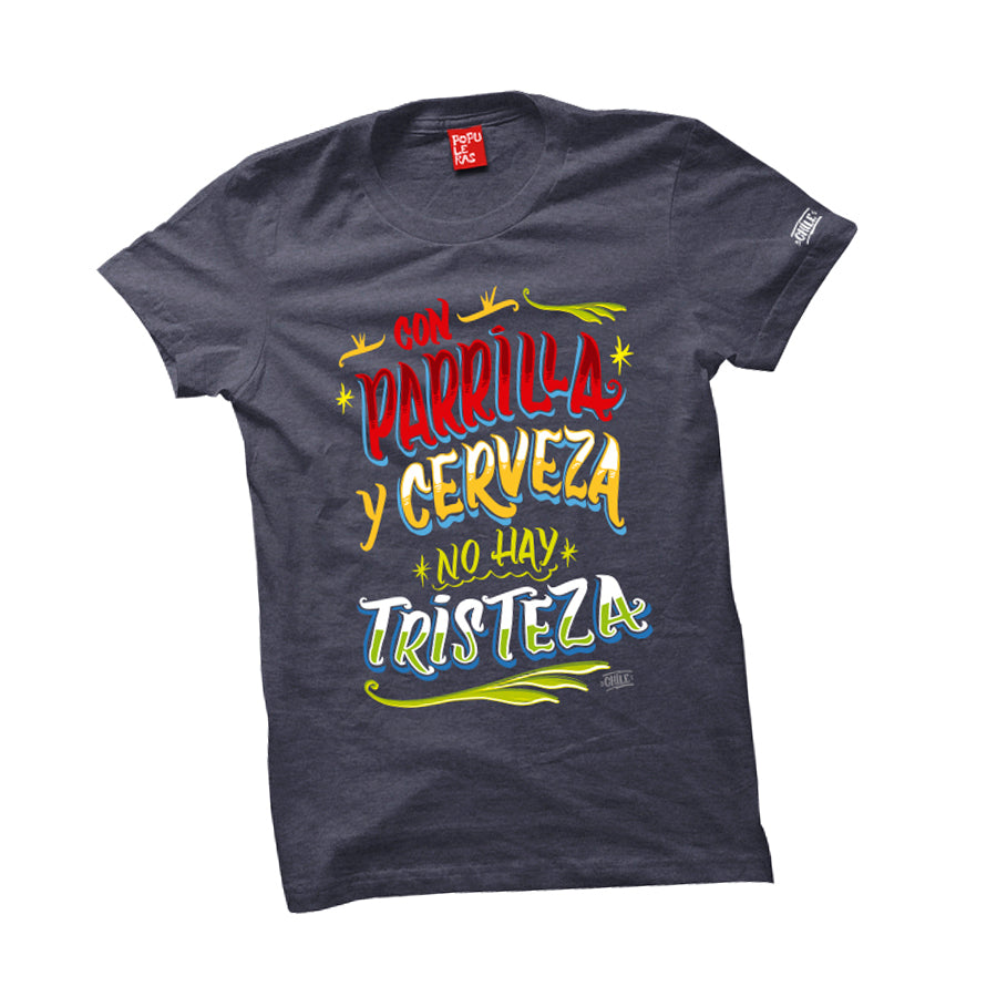 Poleras con diseños originales de POPULERAS, con gráfica popular chilena. Impresas en DTF a full color.