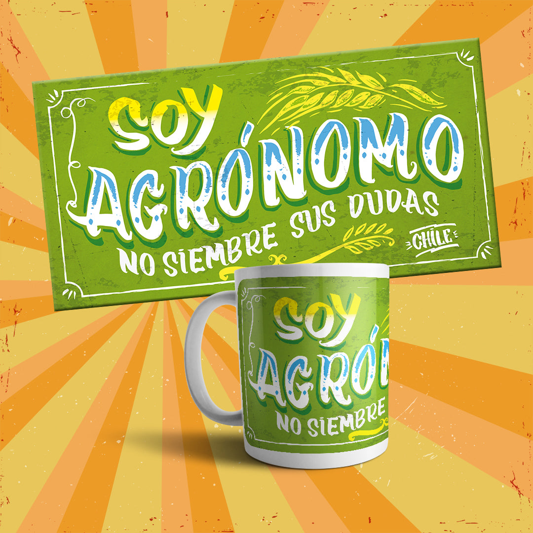 Tazón diseñado con gráfica popular Chilena, letra hecha a mano luego digitalizada. Con diferentes diseños para nuestros profesionales chilenos.
